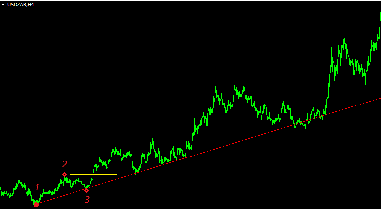 Линия тренда – базовое построение, которое должен уметь делать каждый трейдер. Сложно переоценить простоту и высокую эффективность трендового анализа. По одним лишь трендовым линиям можно построить целую стратегию, которая будет зачастую гораздо прибыльнее, чем более сложные торговые системы. Всё, что нужно – это уметь выделить нужные точки, далее всё крайне просто. Итак, для того, чтобы провести трендовую линию, нам нужно выделить на графике 3 ключевых экстремума: