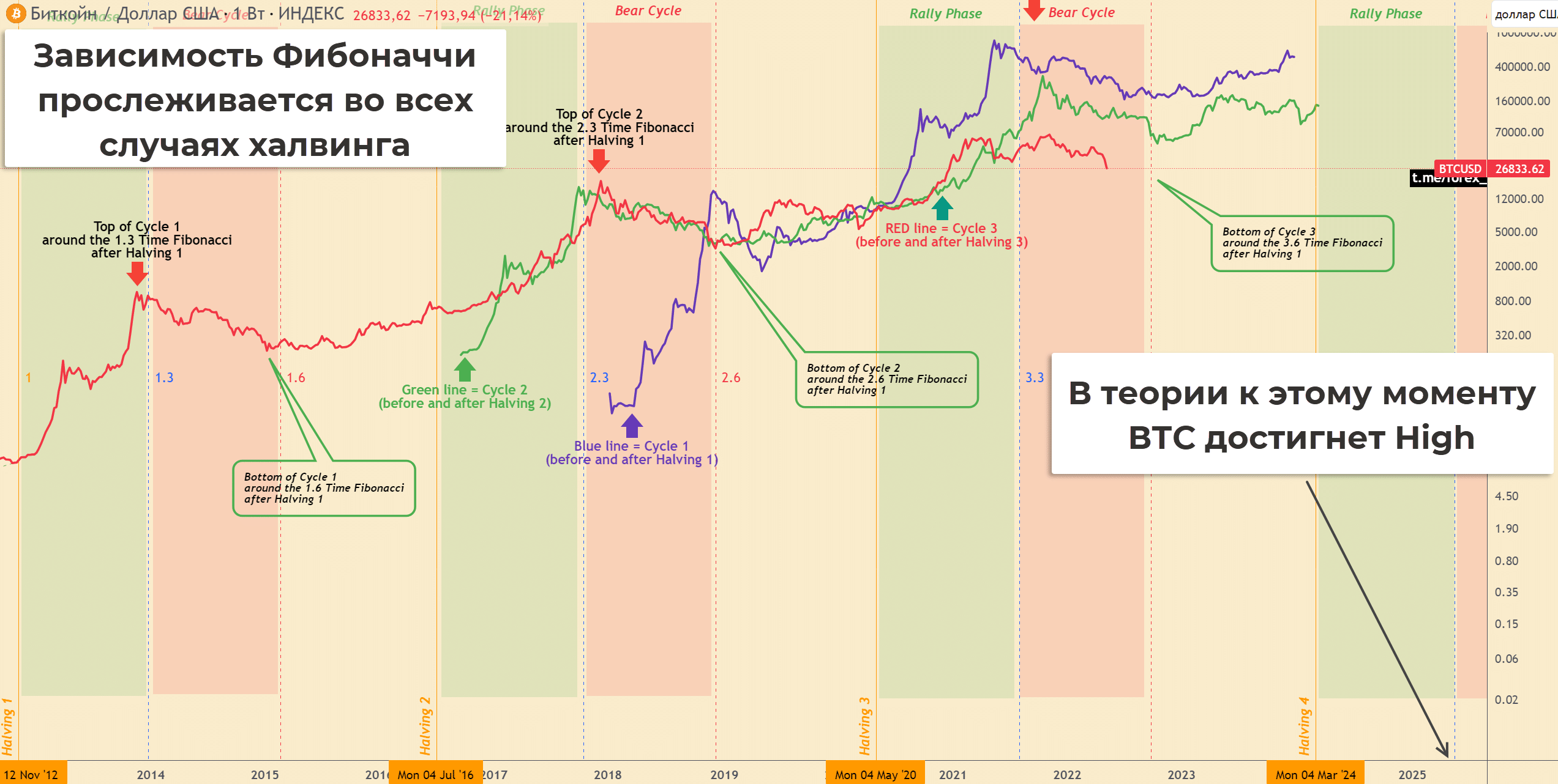 Гарантировать реализацию конкретного прогноза невозможно. На курс ВТС влияет не только халвинг, но и форс-мажорные события типа краха FTX, неожиданные решения регуляторов. Но пока что все намекает на то, что дно пройдено в прошлом году и сейчас идет фаза накопления перед рывком вверх.