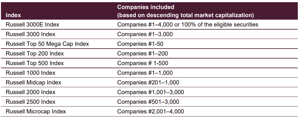 - Ежегодно провайдер выстраивает список из примерно 4000 крупнейших по капитализации американских компаний. Подавляющее большинство из них войдет в один из индексов семейства Расселл.