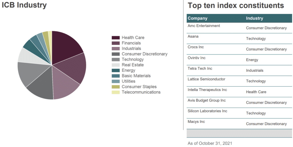 Явных «паровозов» в составе нет, что касается основных секторов, то наибольший вес у здравоохранения, сферы финансов, технологического сектора, промышленности. При этом в корзине нет лидеров индустрии, например, такие компании как Apple, Google в Расселл 2000 отсутствуют. Например, один из крупнейших представителей технологического сектора – Lattice Semiconductor.