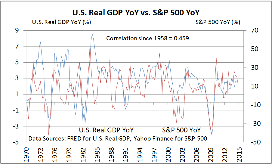В последние десятилетия наблюдается повышение связи этого инструмента с американским ВВП. Математика говорит, что с 1958 г. корреляция между графиком американского ВВП и индексом составляет 45,90%. В последние десятилетия корреляция между этими величинами растет. В критические периоды (пузырь доткомов, кризис 2008 г., локдаун, связанный с коронавирусной пандемией) корреляция достигает 80-90%.
