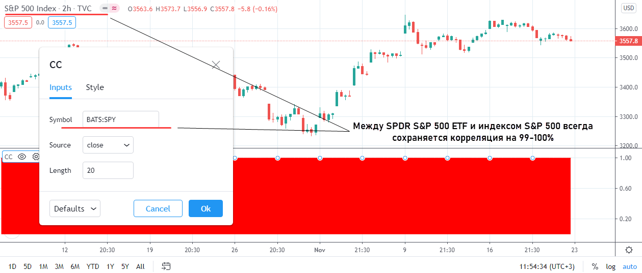 За счет того, что корзины ETF и индекса копируются на 95+% между их графиками всегда сохраняется корреляция на уровне 99-100%.