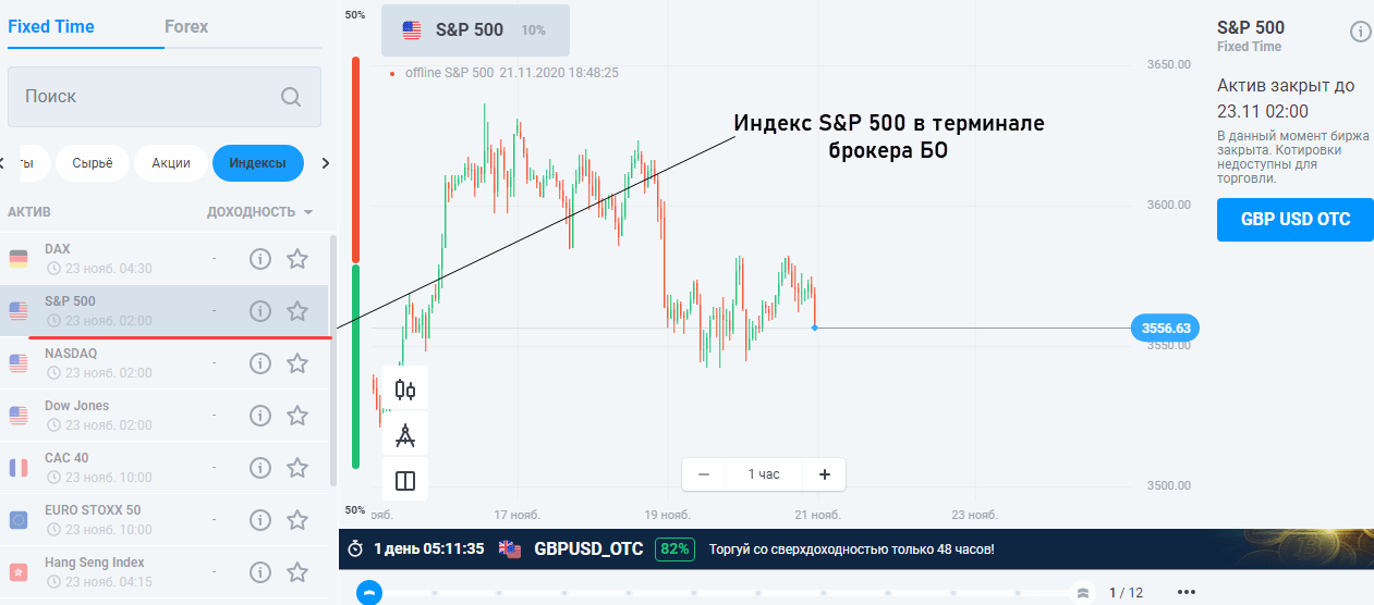 В реальности БО могут быть выпущены на любой без исключения актив, важна лишь его ликвидность и популярность. S&P 500 – один из самых известных мировых индексов, поэтому бинарные брокеры и добавляют его в перечень торгуемых инструментов.
