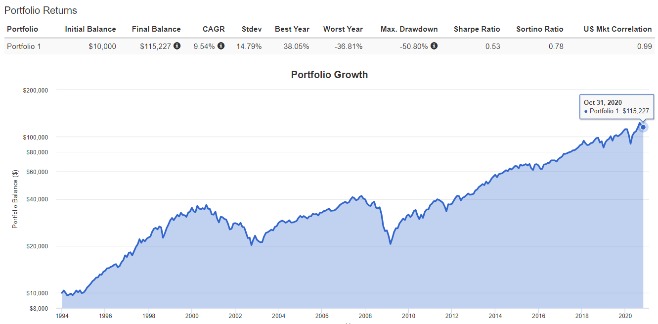 Что касается потенциала долгосрочного инвестирования, то показателен пример старейшего ETF (SPY). За период с конца 1993 г. по конец октября 2020 г. вложения в него могли дать профит в размере 1052,27% (при полном реинвестировании дивидендов). Ни один банковский депозит не даст сопоставимый результат.