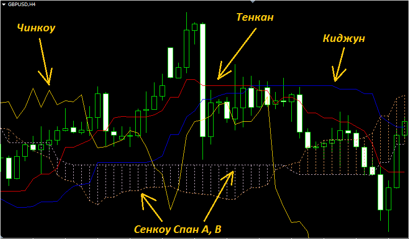 Итак, чтобы начать использовать индикатор Ишимоку, следует разобрать основные моменты, положения, на которых основана торговля.