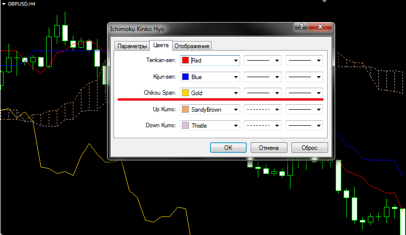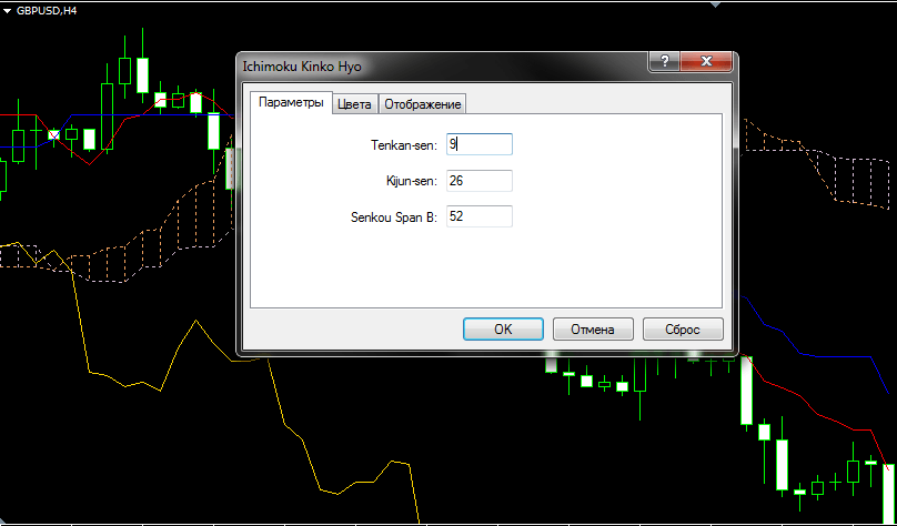 Параметры индикатора Ишимоку