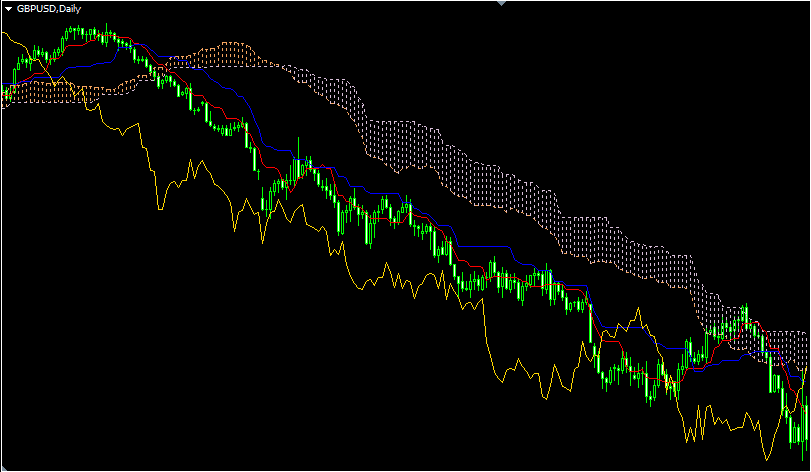 Индикатор Ишимоку (разгов. облако Ишимоку) – это комплексный индикатор, который построен на скользящих средних разных видов. Он даёт сигналы как разворотного характера, так и в трендовом движении.