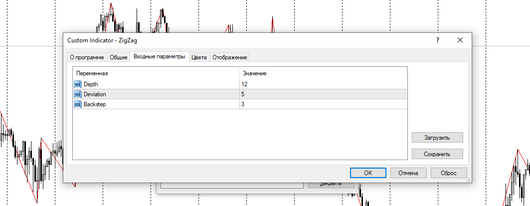 Настройки индикатора zigzag