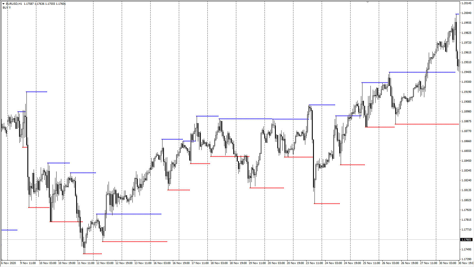 - Zigzag stairs. В этой модификации саму ломаную линию убрали. Вместо этого по экстремумам строятся горизонтальные уровни. Это удобно, экономит время – сразу получаете набор уровней поддержки и сопротивления.