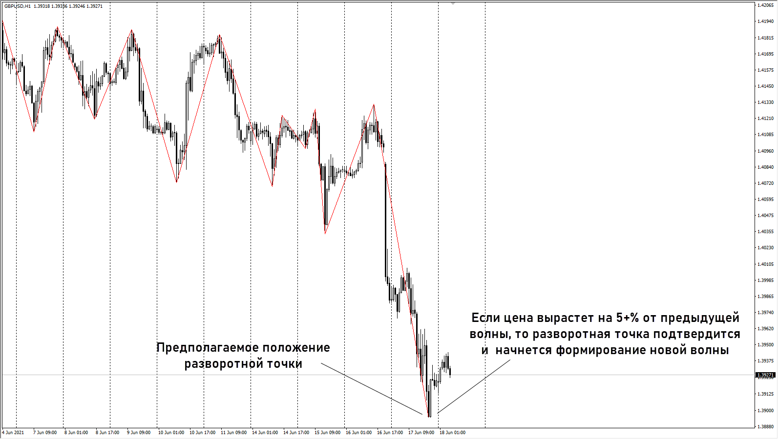 Пример контртрендовой стратегии с использованием зигзага