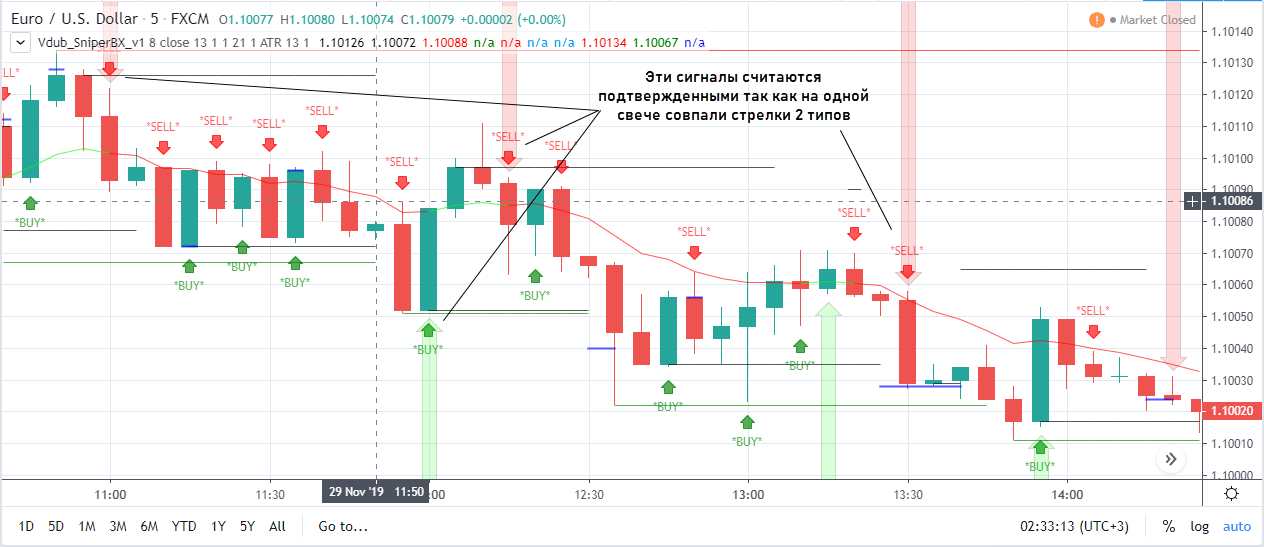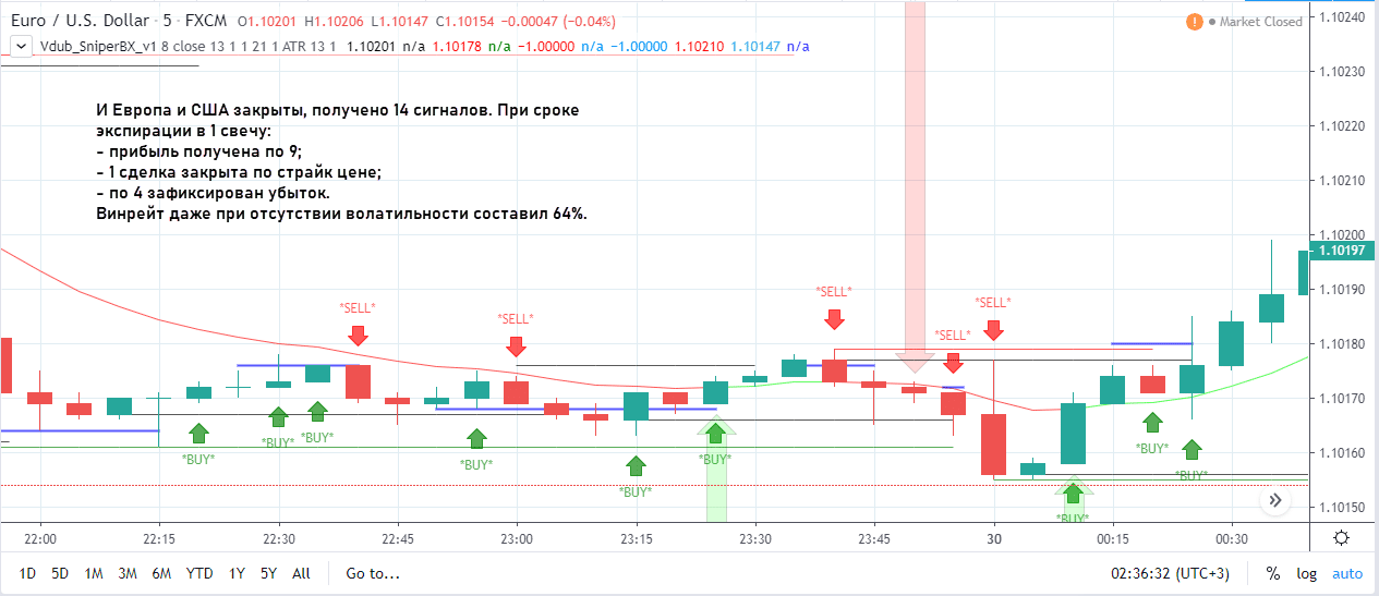 Но этот фильтр необязателен. Если поработаете с историей, убедитесь, что и обычные сигналы без второго подтверждения отрабатывают. Нет смысла фильтровать сигналы и по времени работы европейской и американской торговых сессий. Сигналов очень много, если брать в работу все, можно выйти на винрейт (https://buyhold.ru/vinreyt-v-treydinge/) в 60-65%, а то и выше.