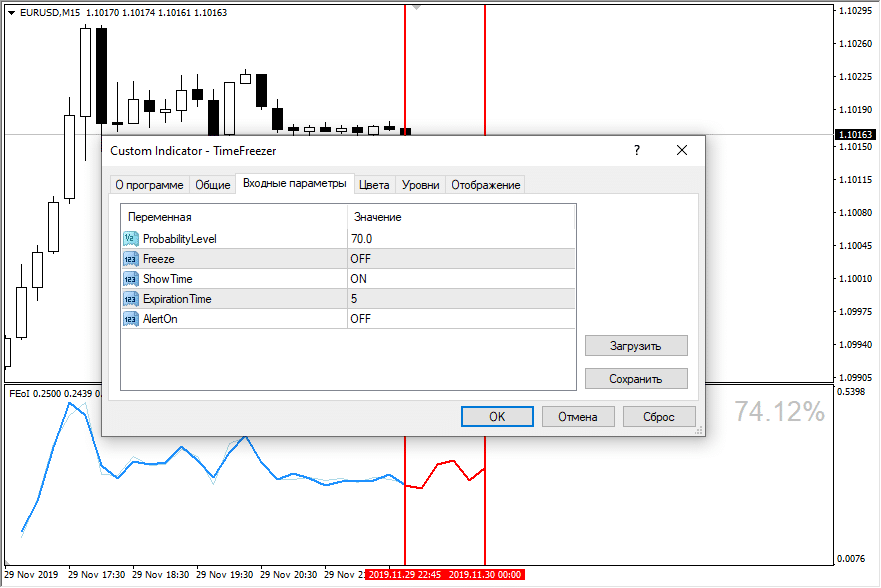 - Probability Level – пороговый уровень вероятности отработки сигнала. Сигналы Time Freezer будет давать только в случае, если этот порог превышен;