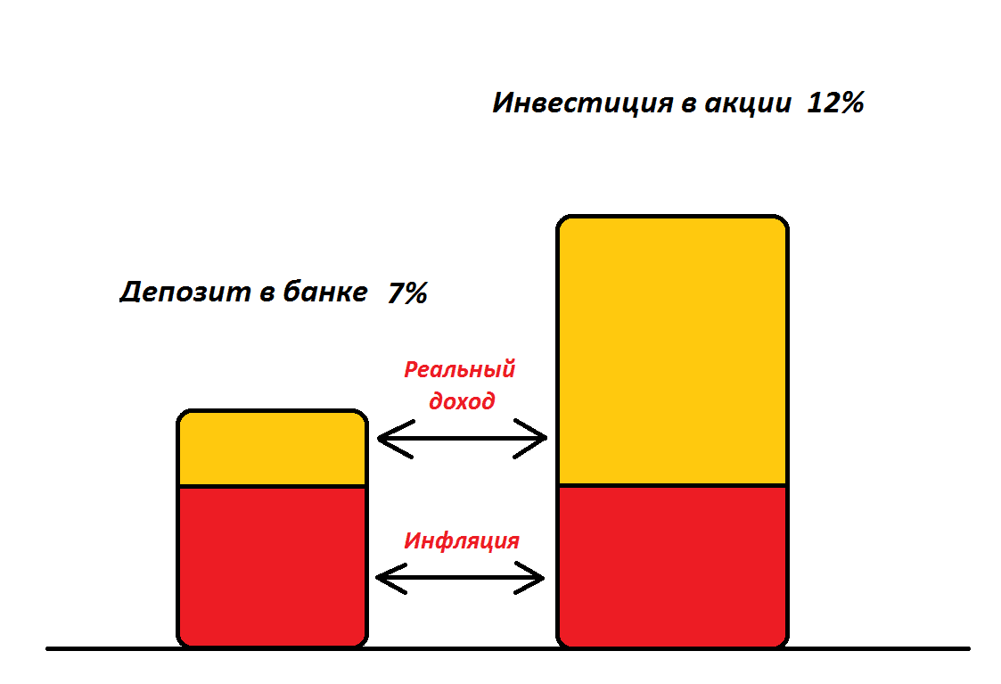 В связи со всем этим есть необходимость составлять свой инвестиционный план таким образом, чтобы всегда иметь значение дохода, превышающее инфляцию, иначе капитал будет расти на бумаге, а в реальности уменьшаться. И в какой-то момент инвестор с удивлением отметит, что деньги-то вроде бы есть, а купить на них получается совсем мало.