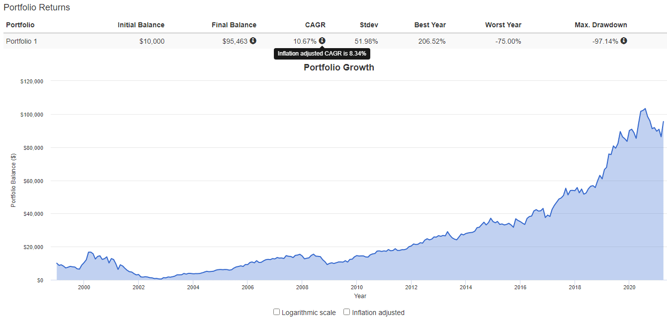 При горизонте планирования в 10 и более лет небольшую часть инвестиций всегда отводят под высокорисковое, но перспективное направление. Криптовалюта идеально подходит на роль такого актива. Даже после впечатляющего роста в конце 2020 г. – начале 2021 г. есть вероятность кратного увеличения стоимости ряда криптовалют в будущем.