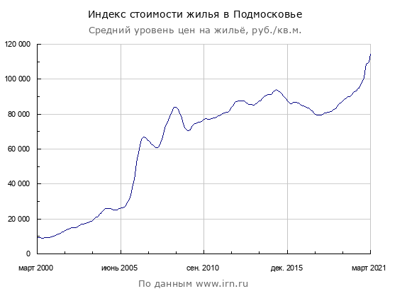 На irn.ru есть неплохая статистика по ценам для Москвы и Московской области. Видно, что за прошедшее двадцатилетие стоимости квадратного метра выросла более чем в 10 раз.