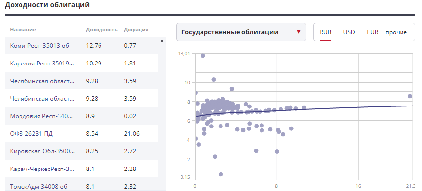 На rusbonds ru можно оценить примерный диапазон доходности по облигациям разного типа. По рисунку ниже видно, что сверхдоходов ожидать не стоит.