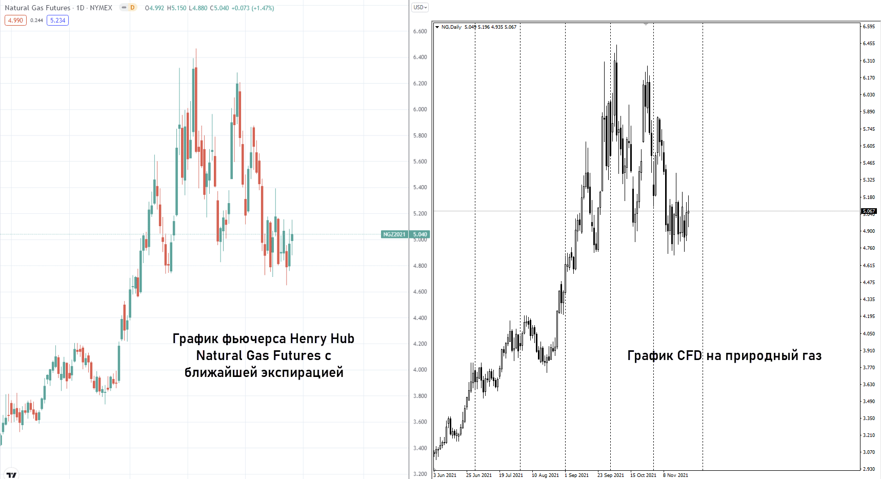 - Контракты на разницу (CFD – Contract for Difference). Это не торговля газом, а скорее ставка на изменение его цены в будущем. При открытии, например, длинной позиции трейдер не покупает газ, а ставит на то, что в будущем цена этого актива вырастет. Можно использовать стоп-лоссы и тейк-профиты, а работа с этим инструментом возможна через обычных Форекс-брокеров. График CFD всегда совпадает с графиком соответствующего фьючерсного контракта, небольшие различия в котировках не влияют на результат торговли. Это не инвестиции в газ, а спекуляции на голубом топливе.