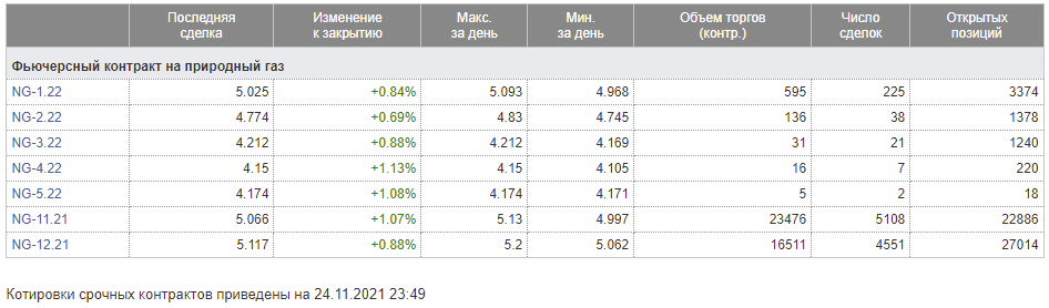 - Расчетные фьючерсы. Самый ликвидный в мире фьючерсный контракт – Henry Hub Natural Gas Futures. Фьючерсы на газ торгуются на многих крупных биржах, например, на Московской бирже постоянно доступно несколько контрактов с разными экспирациями, работать с этим инструментом можно и на NYMEX, и на европейских биржах. Для этих целей подойдут иностранные брокеры либо отечественные.