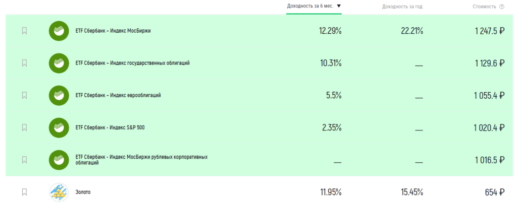 - Отдельный вид – ETF. Его можно назвать портфельной инвестицией в акции компаний. Такой фонд уже за нас выбрал список потенциально прибыльных отраслей, среди которых обычно привлекают внимание лидеры. То есть мы покупаем долю в фонде, который уже состоит из нескольких акций. Инструмент относительно новый, но при этом активно развивающийся. Главный плюс – не нужно самому досконально изучать показатели каждой входящей в состав компании. Многие ETF устроены таким образом, что можно купить и забыть про него – все дивиденды будут направляться на закупку новых акций, то есть идёт постоянное реинвестирование средств. Главное, вовремя выскочить когда начнётся новый мировой кризис, но пока до этого далеко.