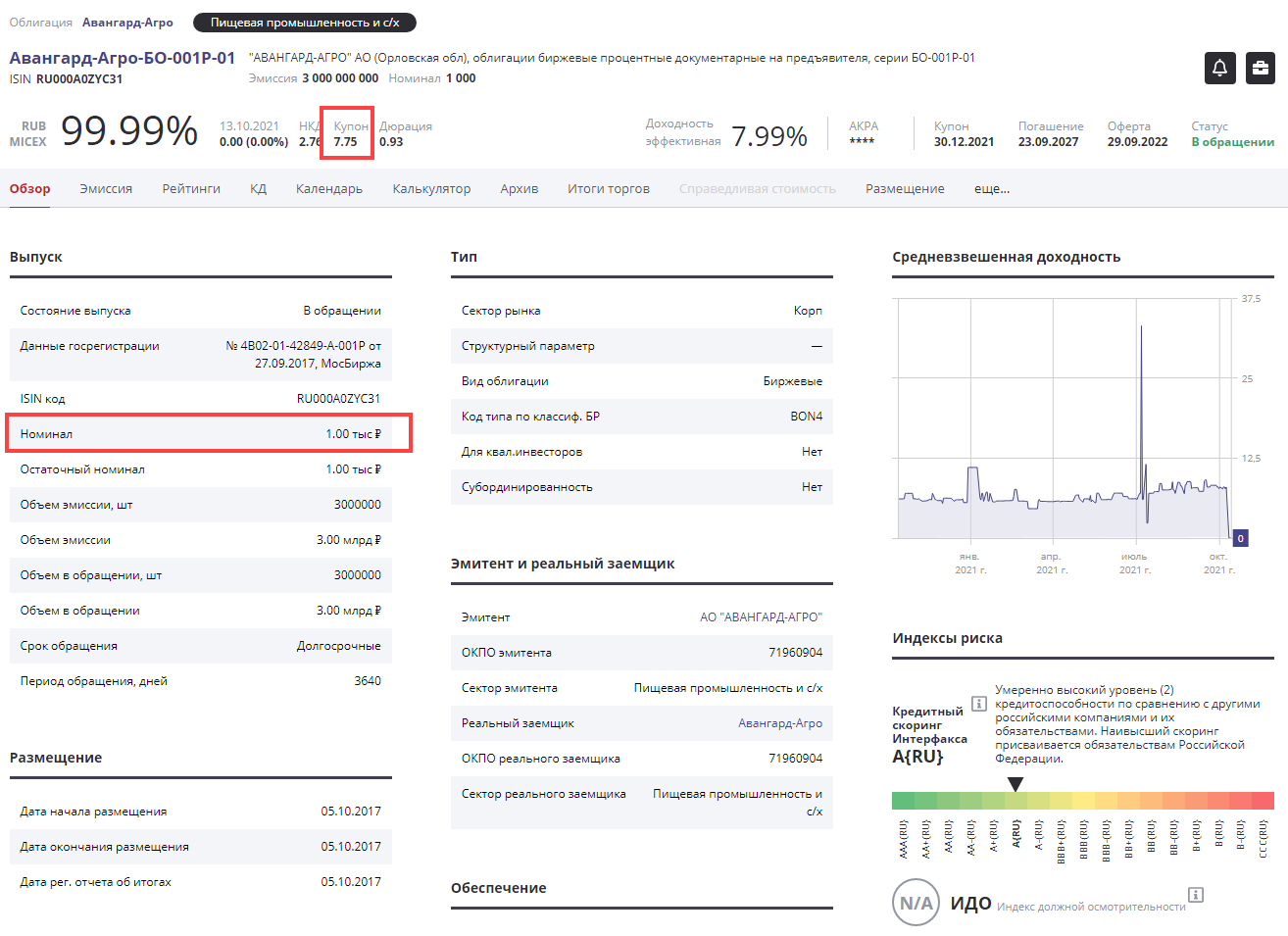 По бондам высоконадежных эмитентов годовой купон составляет порядка 5-8%, то есть доходность ненамного превышает ставку центробанка. Например, Авангард-Агро по своим облигациям предлагает 7,75% годовых. Есть и более привлекательные варианты с купонами 9+%, но при работе с ними риски выше из-за сниженной надежности эмитента.