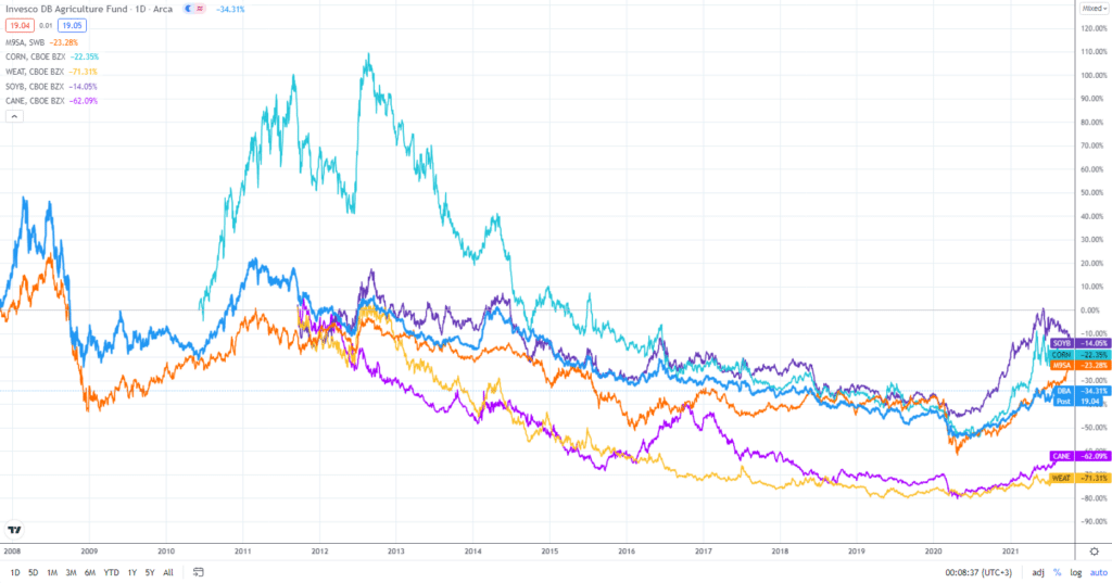 При этом рост сектора в целом не означает, что можно вкладывать деньги буквально во что угодно. В рамках сельхозсектора есть свои лидеры и откровенные неудачники, чьи акции практически не растут. Поэтому без анализа и фильтрации не обойтись, это утверждение справедливо для любого варианта инвестиций и сельское хозяйство не исключение.