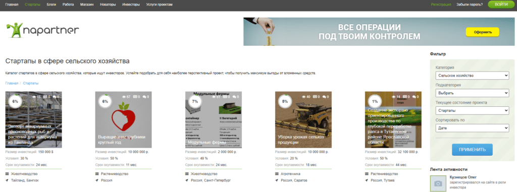 - Финансирование сельскохозяйственных стартапов, в этом случае вы вкладываете деньги в реализацию чужой идеи. Примеры таких стартапов – Bowery Farming (машинное обучение для отслеживания состояния растений на фермах), Avrora Robotics (рязанский проект, сделал ставку на беспилотные механизмы, использующиеся в сельском хозяйстве). Отличительная черта вложений в стартапы – высокие риски и шанс на быструю окупаемость вложений.
