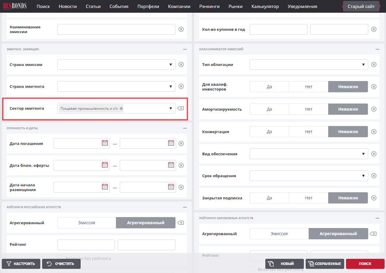 Информация по бондам в обращении доступна на информационно-аналитических сервисах. Например, на rusbonds есть возможность отсортировать облигации по состоянию (в обращении, готовятся к выпуску или уже погашены). В настройках есть фильтр по сектору, к которому должен принадлежать эмитент бондов.