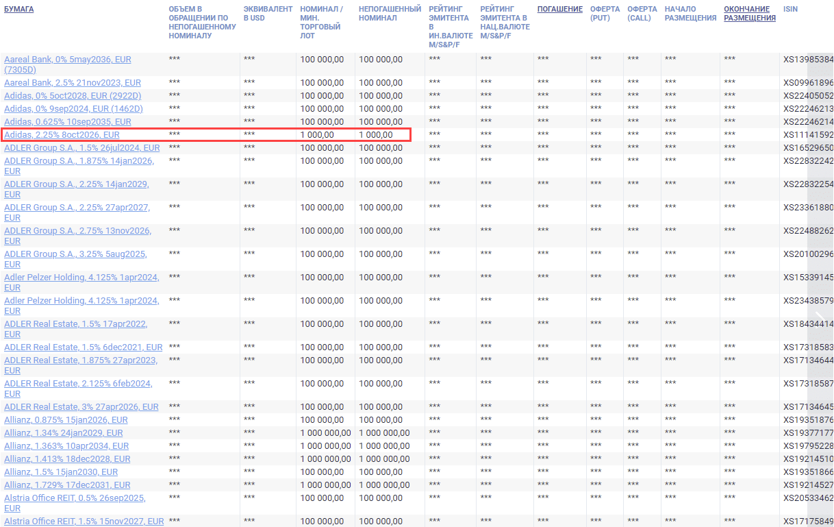 Существуют сотни таких облигаций, доходность напрямую связана с надежностью эмитента. Высоконадежные эмитенты предлагают годовой купон в пределах нескольких процентов. Что касается номинала, то часть бумаг будет недоступна из-за большого минимального торгового лота. Но есть бонды с номиналом в $1000, €1000 – это приемлемый входной порог.