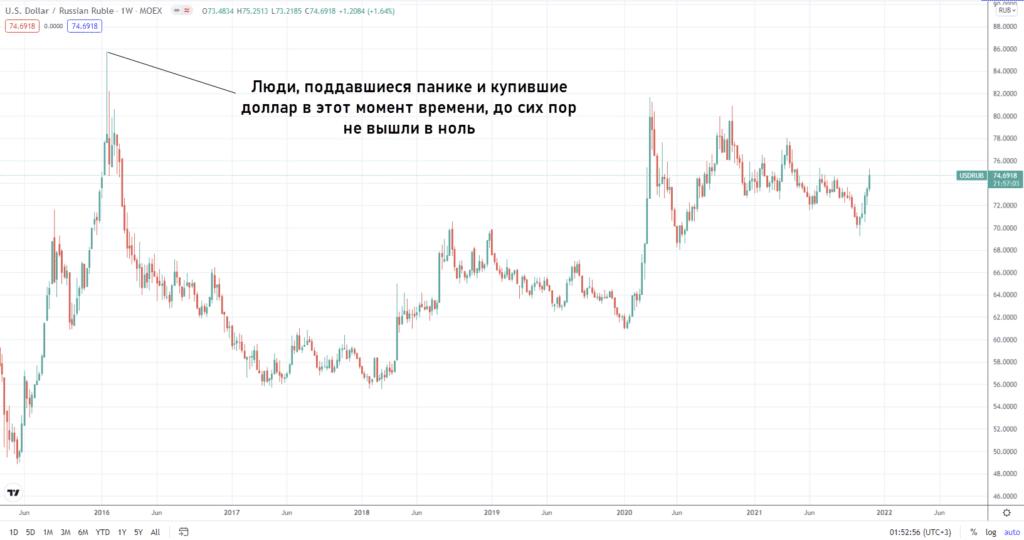- Нельзя поддаваться эмоциям. В противном случае рискуете покупать валюту на High и продавать на Low. Хороший пример опасности эмоций – ситуация с резким падением рубля в середине десятых и в 2020 г., когда началась пандемия коронавируса и развалилась сделка ОПЕК. На волне паники некоторые купили доллар и евро на максимумах и даже спустя год после сделки не вышли в ноль.