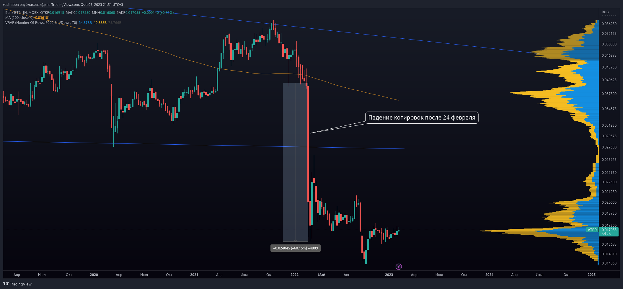В целом инвестиции в акции ВТБ не представляют особого интереса из-за малой рентабельности самого банка, его неэффективной бизнес-схемы и текущих проблем. Но в краткосроке можно заработать на спекуляциях, в т.ч. используя технический анализ.