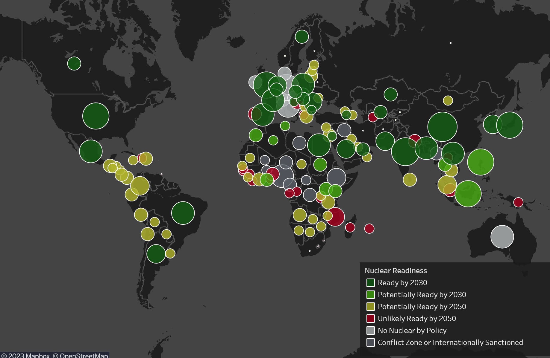 - Китай. Мировой лидер по темпам развития ядерной энергетики, на дистанции с 2000 г. по 2017 г. количество реакторов увеличилось в 10 раз. В 2017 г. в стране действовало 38 реакторов и еще 19 находились на поздней стадии готовности. К началу 20-х годов количество энергоблоков в Китае дошло до 54 и развитие продолжается. К 2030 совокупная мощность китайских АЭС должна достичь 150…170 ГВт (в 2022 она была равна порядка 52 ГВт).