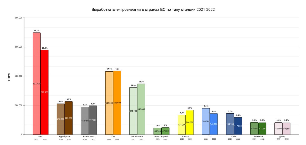 Но уже в 2020-х годах ряд стран взяли курс на ядерный ренессанс. Франция анонсировала строительство 14 новых реакторов, Великобритания — 8, Китай — более 100. США приняли законы о поддержке действующих и новых АЭС на десятки миллиардов долларов. ЕС включил атом в список «зеленых» инвестиций для достижения углеродной нейтральности.