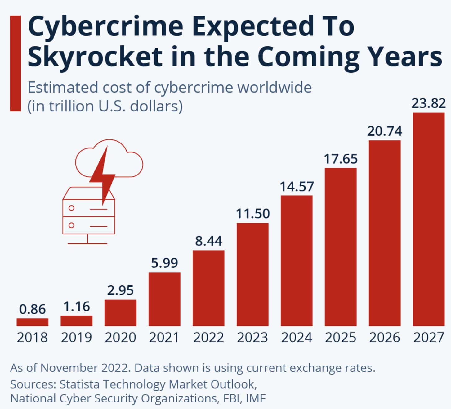 Если в 2020 г. совокупный ущерб от киберпреступников оценивался в $2,95 трлн, то к 2027 г. он может превысить $23 трлн. С учетом этого фактора реальный рост компаний, работающих в этом направлении, может существенно превысить прогнозы.