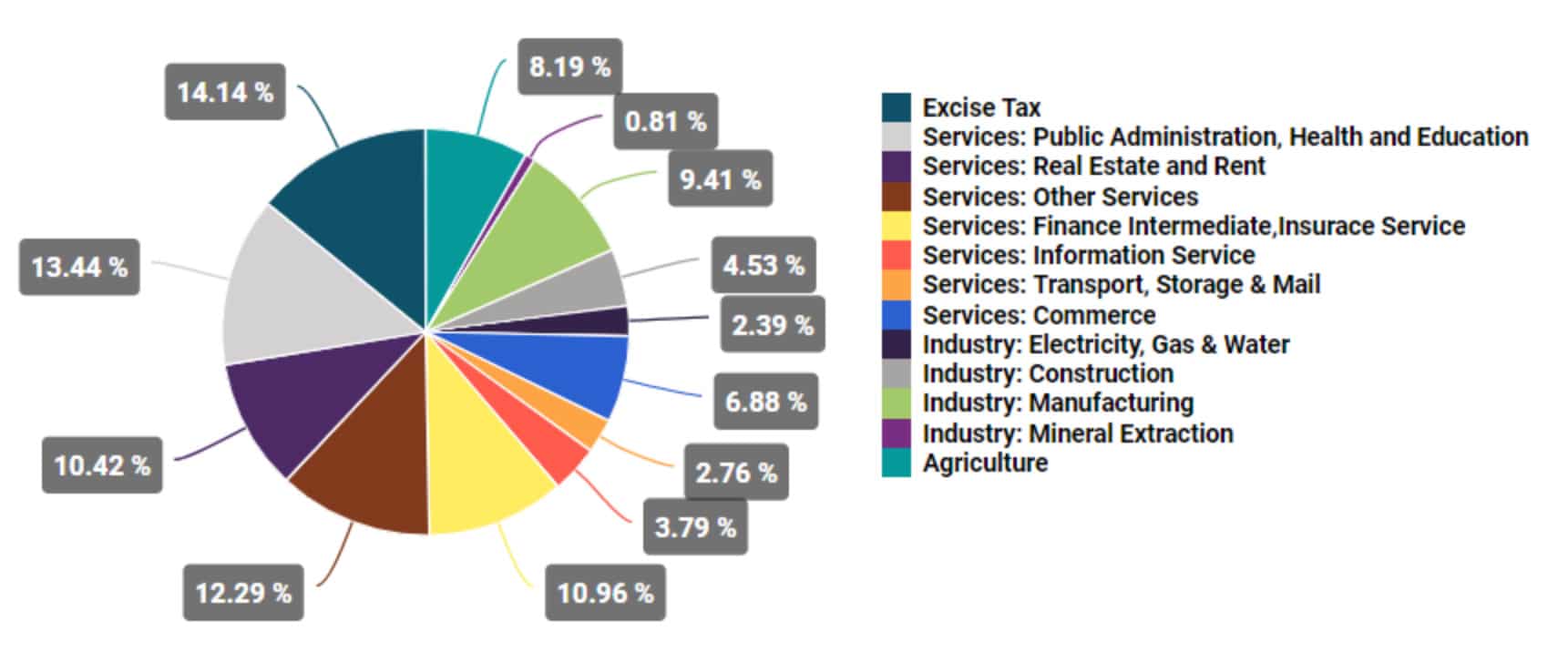 В структуре ВВП явно виден акцент на секторе услуг. В будущем вероятен рост сельскохозяйственного сектора.