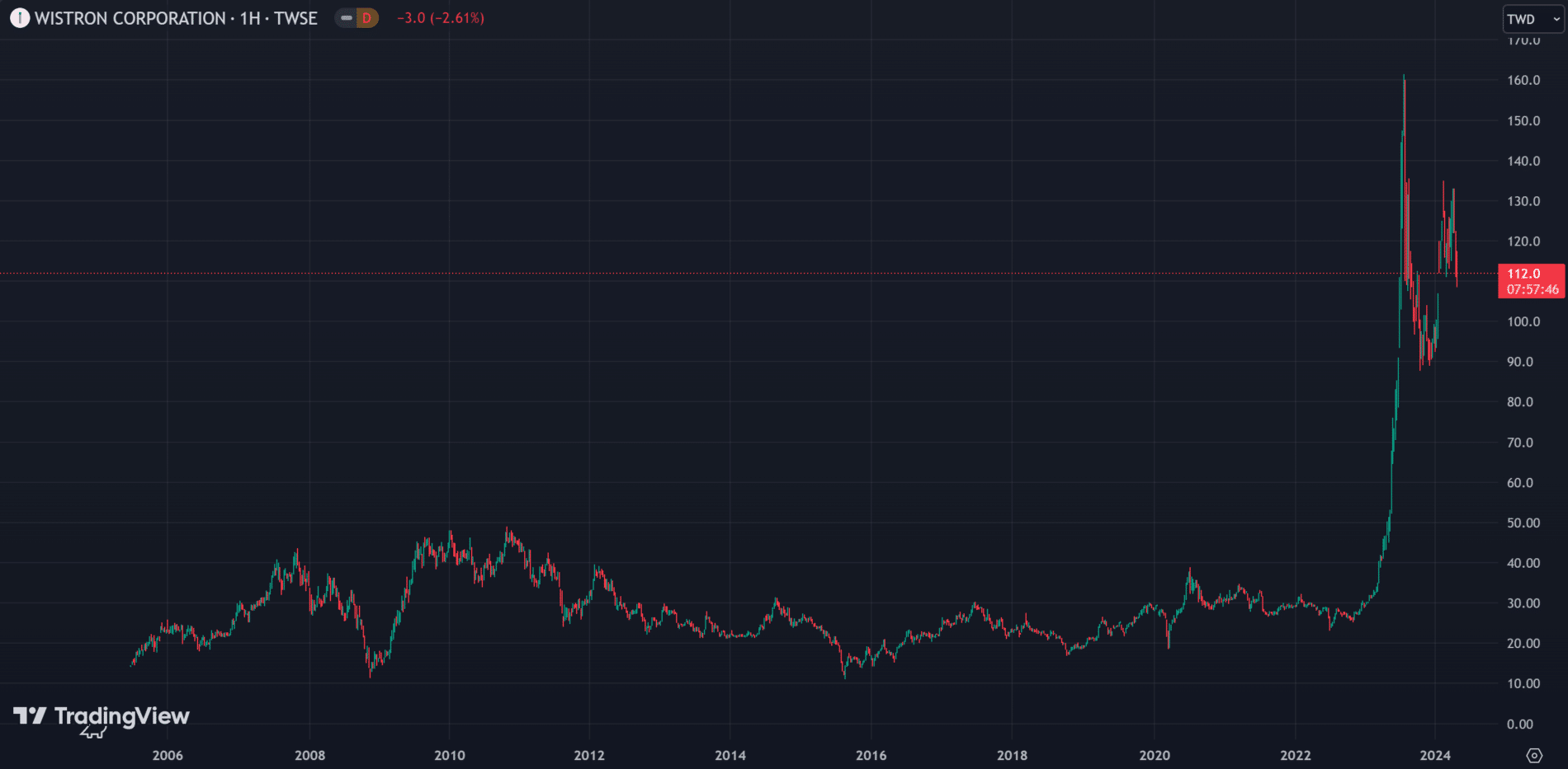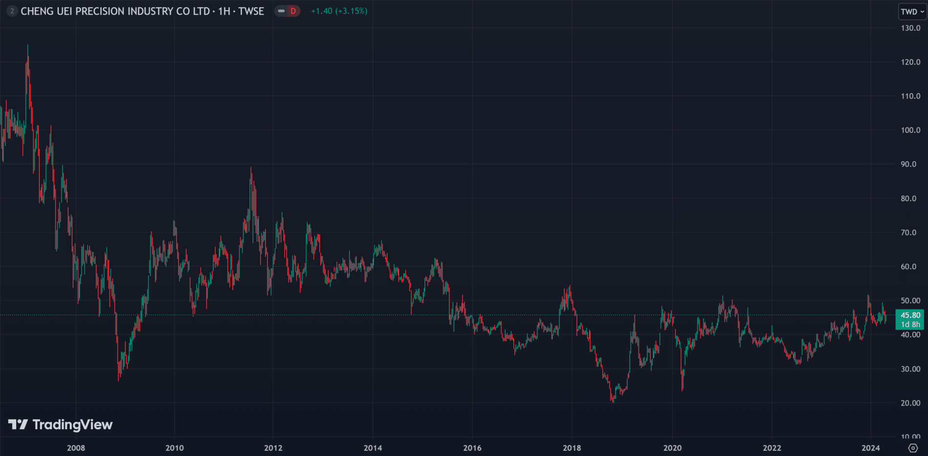 В отличие от предыдущих компаний в случае с Cheng Uei Precision Industry связь с Apple слабо повлияла на котировки. Они подросли, но обновления исторических рекордов нет.