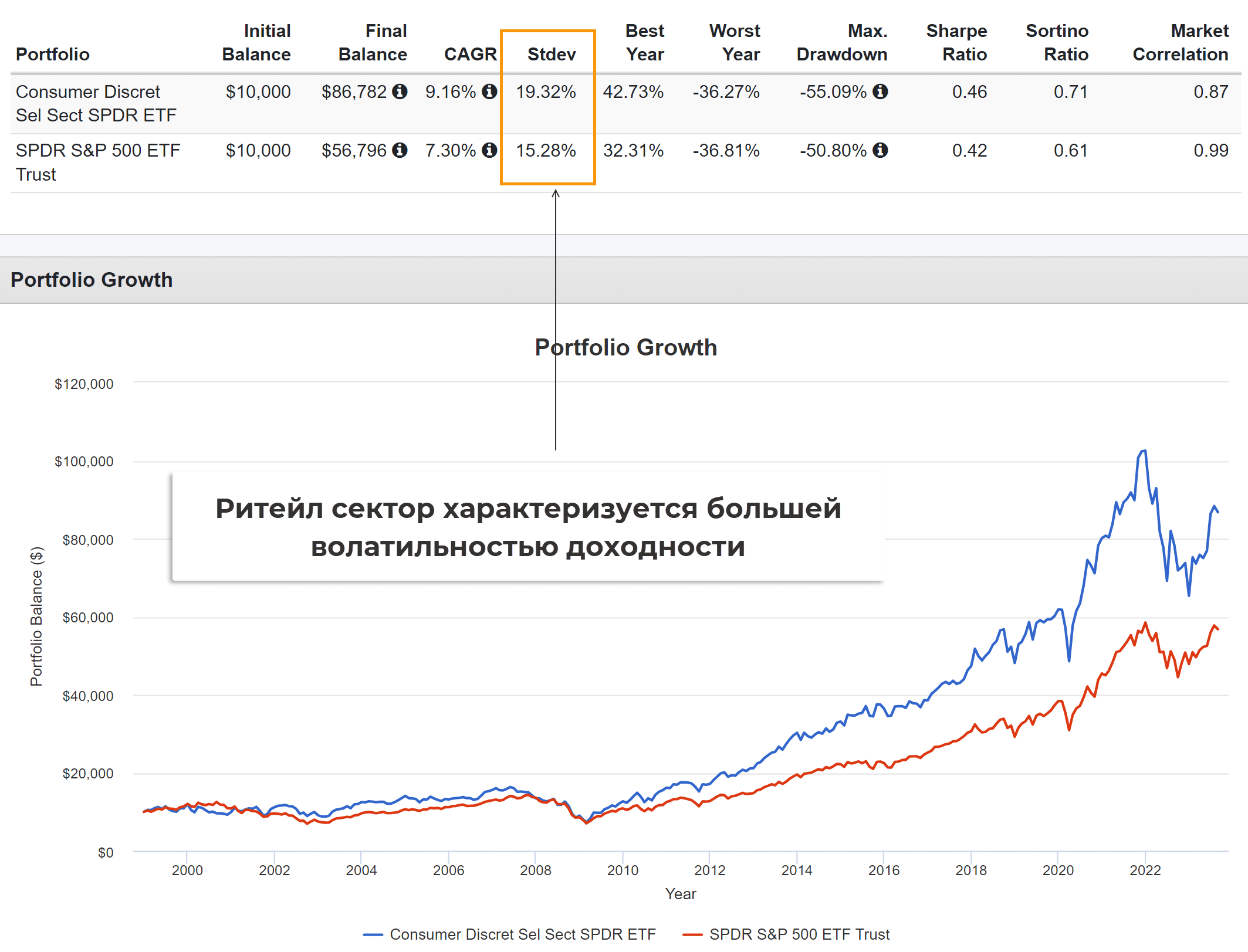 Помимо стоимости портфеля существенно растет и волатильность доходности. Ритейл сектор чаще всего дает большую волатильность доходности.