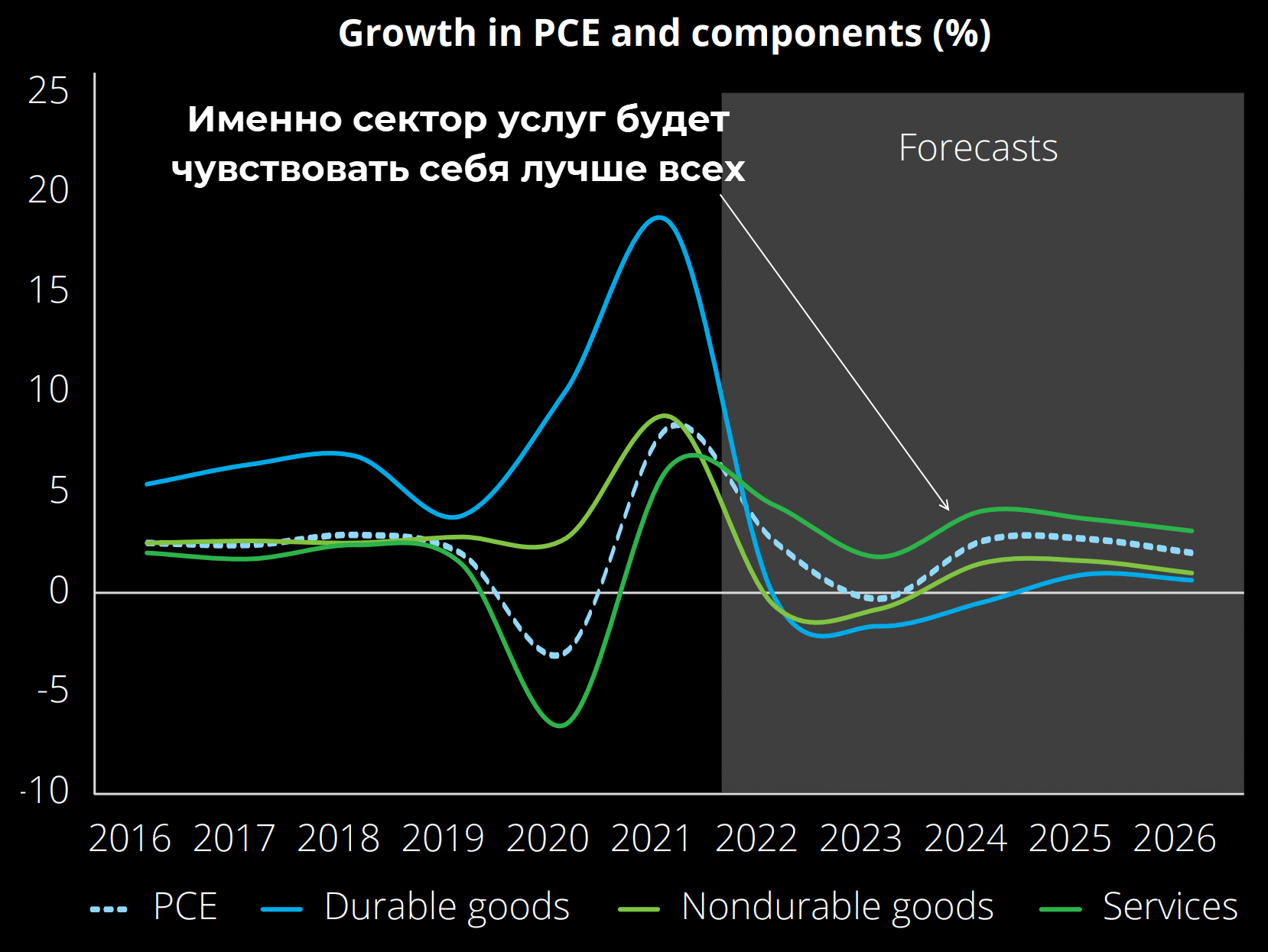 - Пандемия повлияла на структуру продаж и личные сбережения граждан. В США уровень личных сбережений находится на уровне 3,1%, что ниже нормы. После отмены коронавирусных ограничений люди повсеместно стали наверстывать упущенное, это касается сферы развлечений, услуг. Но из-за сокращения личных сбережений население стало меньше тратить на покупки товаров длительного пользования. Это крупные покупки, многие откладывают их до лучших времен. Из-за этого как минимум до середины 20-х годов возможен медленный рост продаж товаров длительного пользования.
