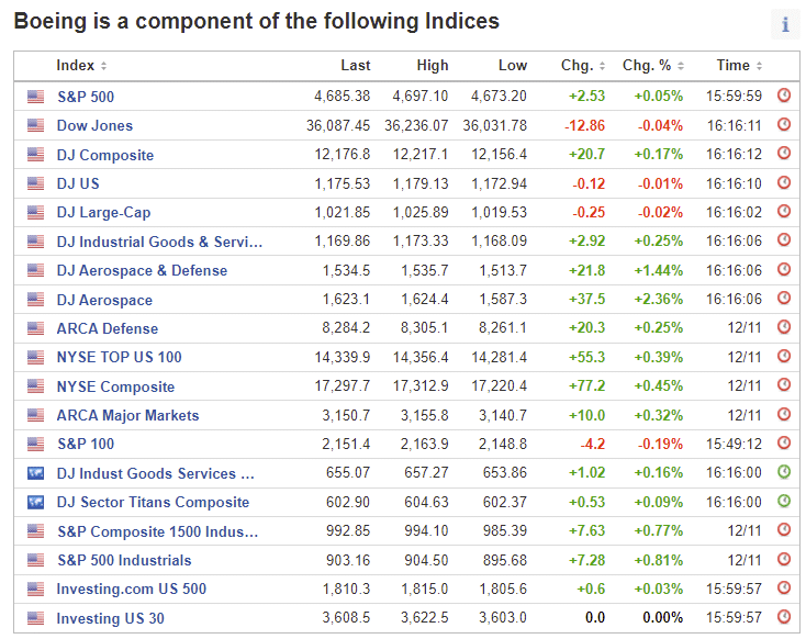 - Американских S&P 500, DJ Composite, DJ Aerospace, DJ Aerospace & Defence, S&P 500 Industrials.