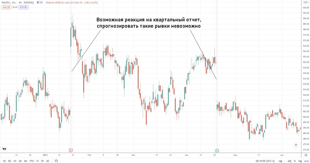 - Квартальные отчеты. Финансовый и календарный года совпадают, каждые 3 месяца публикуется отчет, он может сильно повлиять на котировки. Трейдерам стоит поставить торговлю на паузу накануне публикации этого документа, есть риск попасть на непрогнозируемое движение графика.