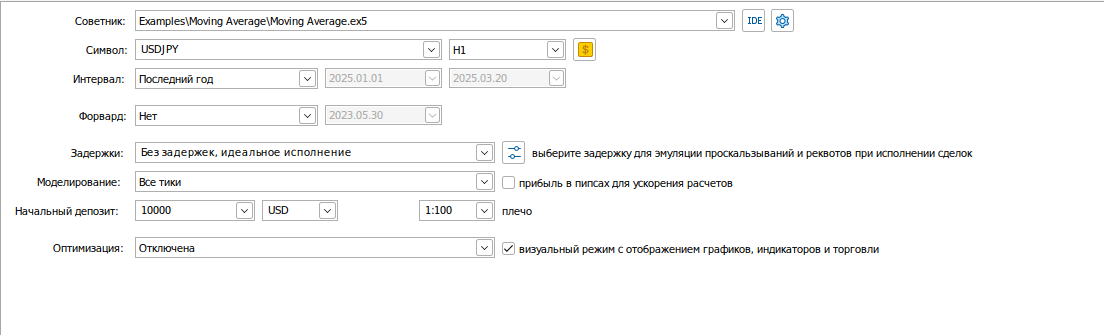 Для этого как раз пригодится «Тестер стратегий» в терминале. Достаточно задать параметры тестирования: