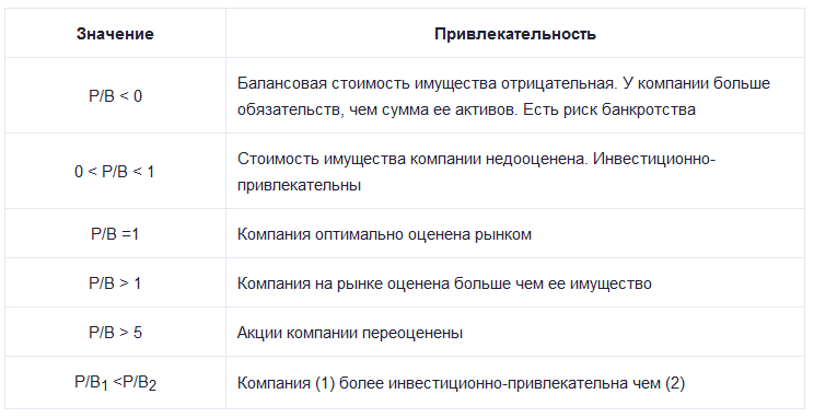 - P/BV – капитализация отнесена к СЧА (Book Value – стоимость чистых активов). Если P/BV меньше 1,0, то компания обладает активами, превышающими ее капитализацию;