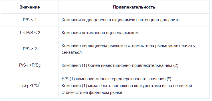 - P/S – в числителе находится стоимость акции, в знаменателе – выручка на 1 бумагу. Рекомендуется использовать для оценки всех без исключения компаний;