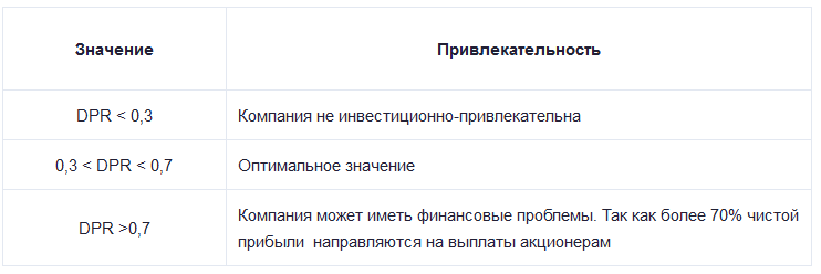 - Payout – какая доля прибыли идет на выплаты акционерам. Для дивидендных портфелей не стоит выбирать компании, платящие менее 30% и больше 70% от прибыли в качестве дивидендов. Первые непривлекательны с точки зрения дивидендов, вторые могут скорректировать дивидендную политику;