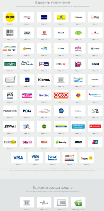 - в криптовалюте. Об использовании крипты в Neteller поговорим чуть позже. Комиссия также 2,5%.
