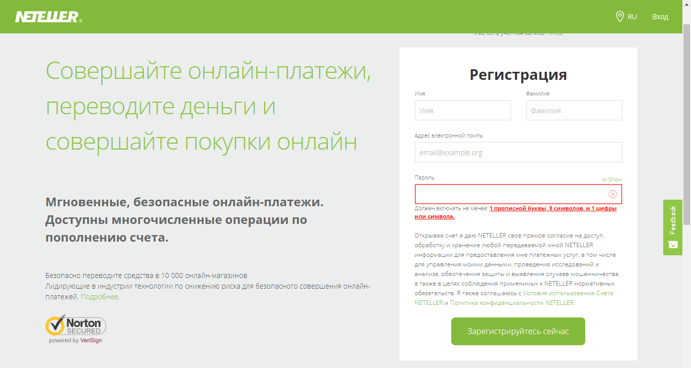 Регистрация в Neteller, использование платежной системы