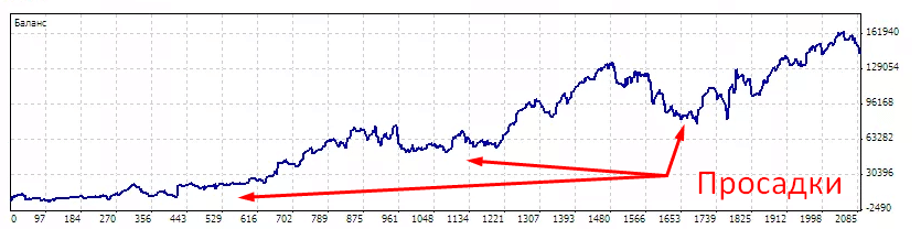 Что получаем в таком случае? Коэффициент Шарпа будет всё также высоким из-за высокой доходности, но вот только риски по факту совершенно другие. Слив такому трейдеру не грозит, у него рабочий подход совершенно другой, который предусматривает быструю фиксацию маленького по размеру убытка. А за счёт умений по тренду берутся огромные расстояния. Если посмотреть стейтмент, то там будет 70-80% убыточных и нулевых (безубыточных) сделок, но зато профитные будут в десятки раз больше по величине.