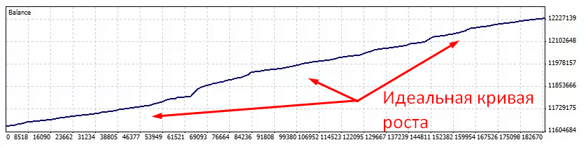 То есть результат выглядит потрясающим, но в реальности мы понимаем, что такая торговля не будет бесконечно успешной, рано или поздно депозит такого скальпера сливается. Происходит так по одной простой причине – если мы задействуем депозит полностью, то зарабатывать можем сколько угодно пунктов, а вот слив всегда будет через фиксированное значение. По евродоллару это будет около 110-120 пунктов при плече 1:100. Такой подход работы “на всё” практикуется многими. Коэффициент Шарпа будет очень высоким и будет показывать реальную картину.