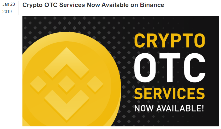 В этой сфере появляются новые игроки. Чаще всего это успешные криптобиржи, добавляющие к стандартным торгам еще и ОТС сегмент. Пример – Бинанс, с 23 января 2019 г. с обычных Бинанс аккаунтов можно работать и вне биржи. Компания призывает пользоваться этой возможностью крупных инвесторов с тем, чтобы не терять деньги на изменении курса. Минимальный объем сделки 20 ВТС, что по текущему курсу превышает $70 тыс.