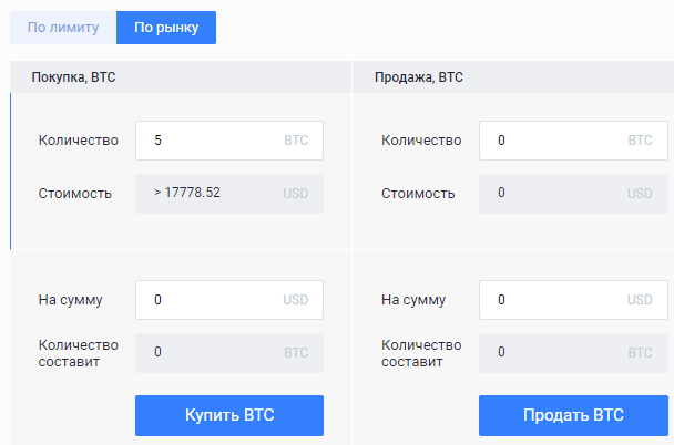 Разберем трейдинг криптовалютой на примере покупки Биткоина за доллары на Exmo. Предположим, нужно купить 5 биткоинов по рыночной цене, для этого: