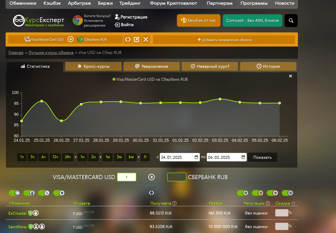 - Изучаем топ-5 обменников с лучшим курсом на текущий момент.